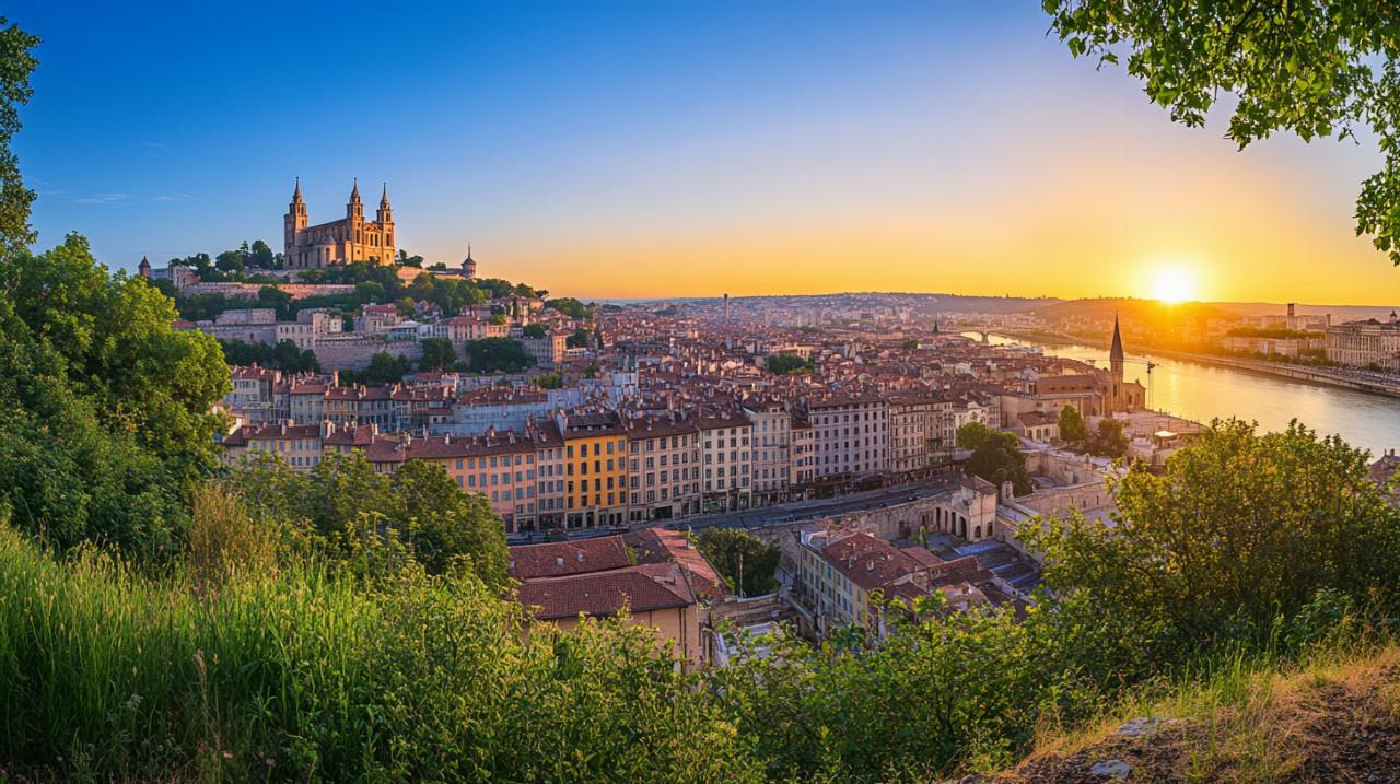La colina de Fourvière domina el paisaje urbano de Lyon y ofrece las vistas panorámicas más espectaculares de la ciudad. Conocida tradicionalmente como la colina que reza, este promontorio concentra algunos de los monumentos más emblemáticos y antiguos de Lyon, recordando su pasado como Lugdunum, capital de la Galia romana. El ascenso puede realizarse a pie por senderos históricos o mediante el funicular que parte desde el Vieux Lyon, una experiencia en sí misma que anticipa las maravillas que aguardan en la cima.
